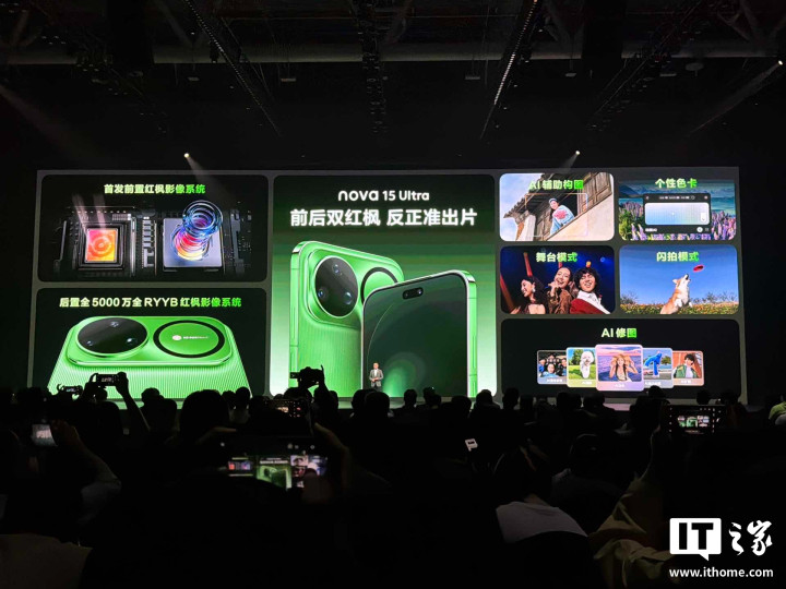 IT之家12月22日消息,华为nova15系列及全场景新品发布会正在进行中,据华为终端BG首席执行官何刚介绍,nova15新机全系支持个性色卡、AI辅助构图等功能。
