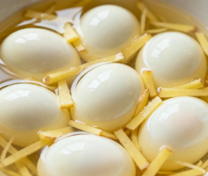 2.先把鸡蛋洗干净,冷水下锅煮5分钟,煮好后剥壳,用牙签在蛋身上,扎几个小孔,这样黄芪的药效,更容易渗进去。